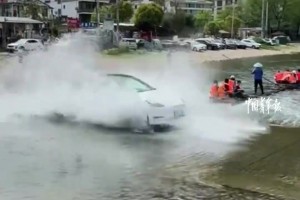 男子开车驶过景区涉水路段准备洗一下车。结果直接掉装备